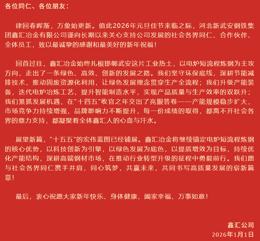 鑫匯公司2026年元旦寄語