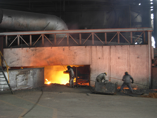 出鐵是最為壯觀的時候,如果順利,每爐鐵水要流60至70分鐘。爐口不暢通的時候,穿著阻燃服的爐前工戴著防護面罩,站立在1470多度的爐前疏通。出鐵后,也是爐前工最累的時候,他們要做許多的準(zhǔn)備和后續(xù)工作,如報罐、填寫報表、清理鐵水的殘渣、殘鐵、備料、倒渣、驗罐、現(xiàn)場定置等。大壕幾百度的高溫,暗藏著的險情不言而喻,如果稍一走神,便會有燒、燙傷的危險。一天下來,爐前工的衣服濕透了,臉上掛滿了黑灰,身上也變得鐵一樣黑。